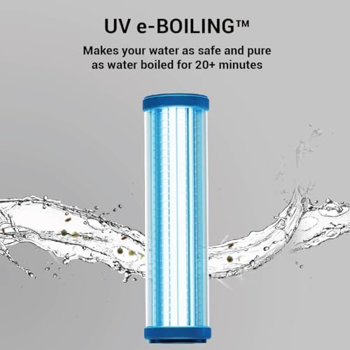 Water Suitability- This product is ONLY SUITABLE for Municipal/ Public/ Piped water (TDS <200 PPM) & NOT SUITABLE for Borewell/ Tanker Water (TDS > 200 PPM) Product Technology- UV with patented Mineral Guard Technology & Mineral Charge Cartridge Patented Mineral Guard Technology- Retains essential natural minerals like Calcium & Magnesium in water UV e-boiling- Ensures that every drop of water is as healthy and safe as water boiled for 20 minutes Mineral Charge Cartridge- Increases the level of Calcium & Magnesium in the purified water after UV e-boiling High Water Dispensing Rate (up to 2 L per minute) Convenient Features- a) Supreme Aesthetics, b) Touch Sense Technology, c) Energy Saving Mode, d) Smart Service Alerts Post Purchase Perks- a) Free Installation, b) 1 Year Domestic Warranty, c) 2 Free Services
