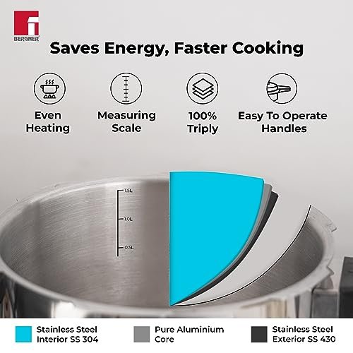 ↕️Construction : Made of high-quality tri-ply 18/10 stainless steel which ensures minimum oil healthy cooking ✔️Triple Security System : Argent Triply UnPressure Cooker comes with 3 levels of safety ♨️Gasket Release System : Provides safety by letting out the excess steam built up inside the Cooker ☑️Conventional Safety Valve is fitted on top of the lid, it helps to release excess pressure when it rises beyond a safety level 🔒Safety Lock System makes sure the lid is not opened accidentally while the Cooker is in use
