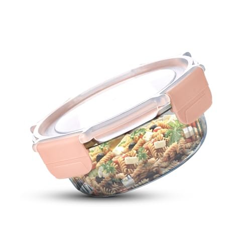 👌🏻Premium Borosilicate Glass : Made from high-quality borosilicate glass for superior durability, stain resistance, and clarity ⭕Secure Smart Lock Lid : Airtight lid with secure locking tabs ensures freshness and leakproof transport ✅Food Safe Materials : Both the borosilicate glass container and PP lid are food-grade safe, free of harmful chemicals 👍🏻Perfect Portion Size : Ideal 950ml capacity for storing leftovers, snacks, or packing lunch 📥Space-Saving Design : Round shape with stackable design maximizes storage efficiency 🔥Microwave Safe : Reheat leftovers conveniently directly in the container (up to 400°C) 🕳️Oven Safe : Safely transition from fridge to oven for baking or casseroles (up to 400°C)
