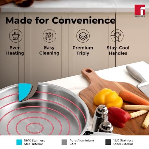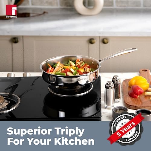 🍯Less Oil Use & Low Flame Cooking : The triply material heats evenly and reduces hot spots, preventing food from burning or sticking. This allows you to use less oil while still achieving a non-stick effect for healthier cooking