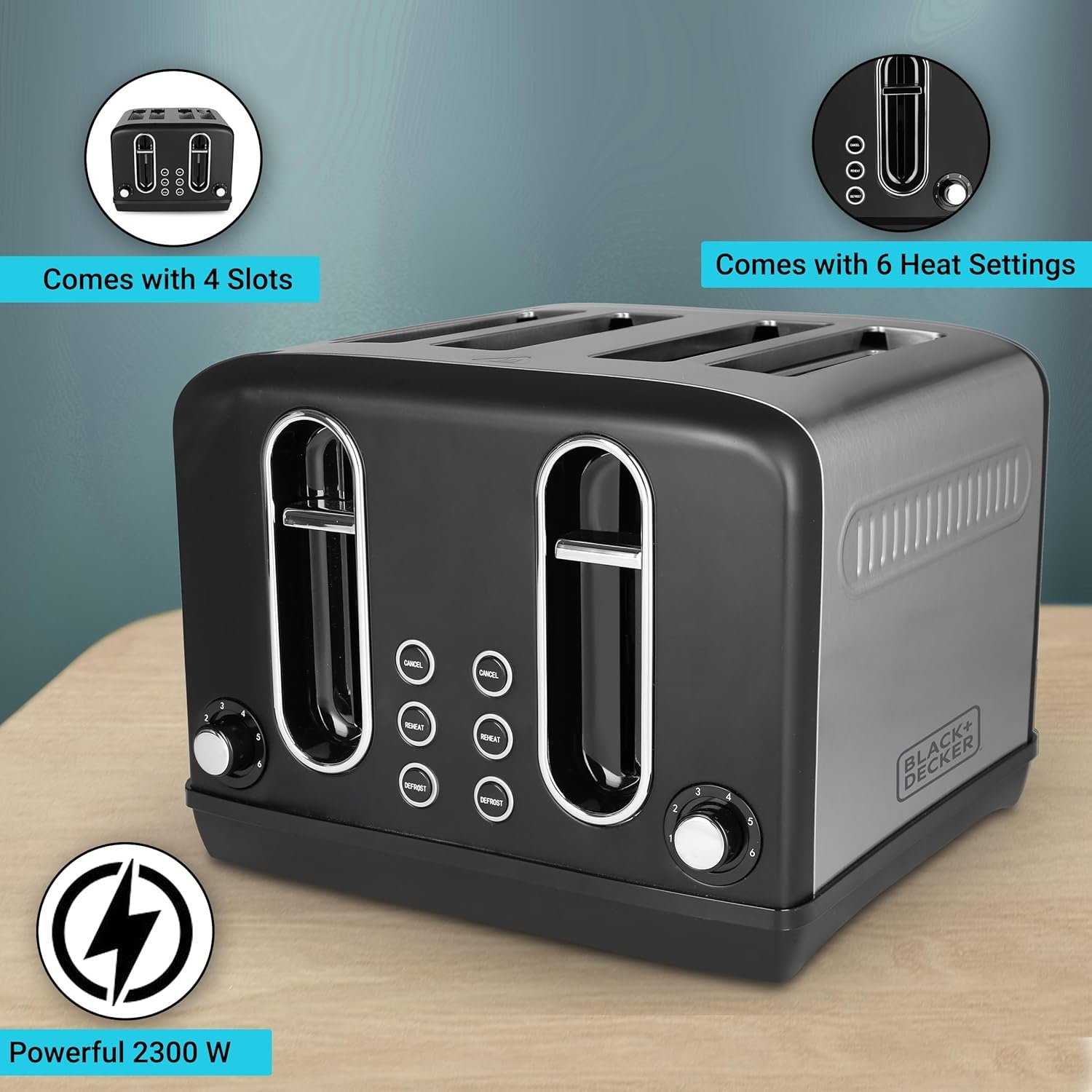 BLACK DECKER-4 SLICE STAINLESS STEEL POP-UP TOASTER-2300W