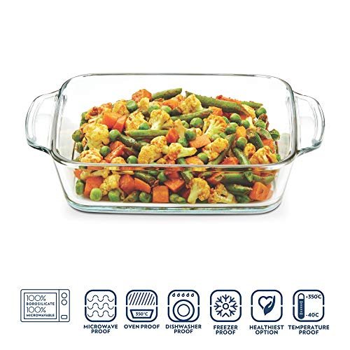 Borosil Smartgrip Square Glass Baking Dish Casserole With Handle, Borosilicate Glass, Microwave & Oven Safe, For Serving & Baking, 2 Liter,Transparent