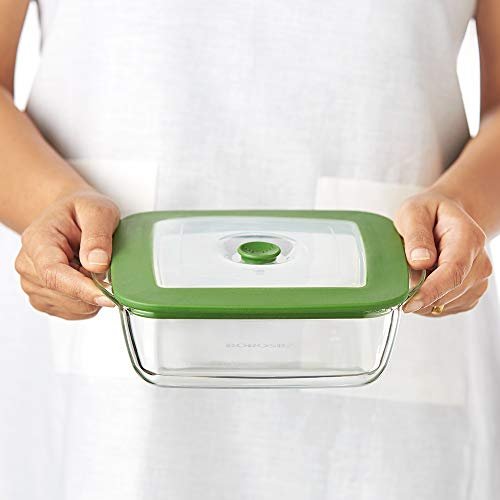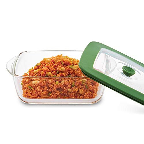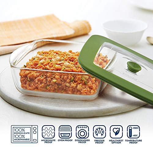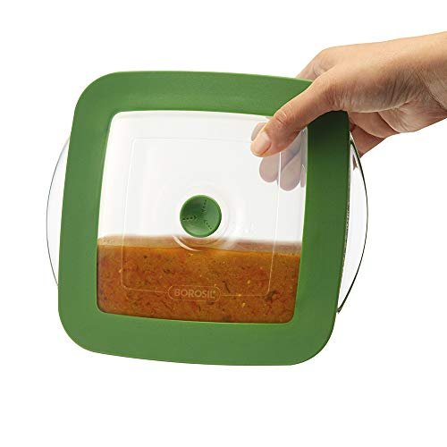 BOROSIL DISH-SQUARE W/GREEN LID 1LTR