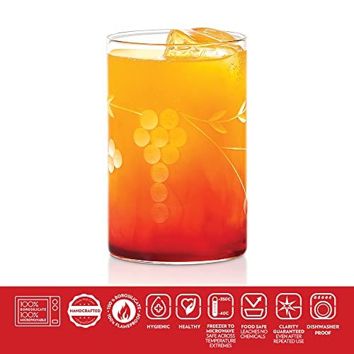 Borosil 350 ml Set of 6 pcs Berry Vision Transparent Drinking Glass | Borosilicate Glass Tumblers for Water, Cold Drinks, Juice| Flame Proof, Microwave & Dishwasher Safe | for Daily use & Gifting