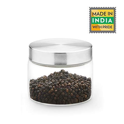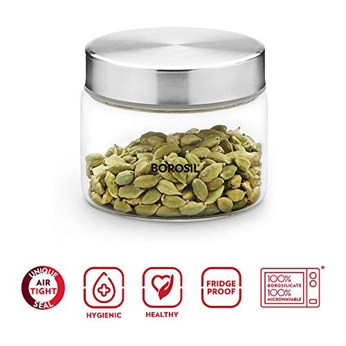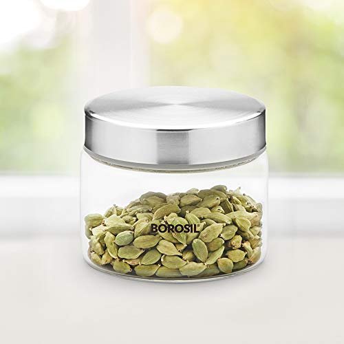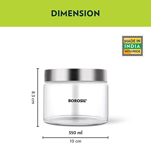 Borosil Endura Glass Jar, Air-Tight Storage Containers For Kitchen, Glass Storage Organiser For Spices, Snacks, Grains, Dals, Set 350 ml, Clear