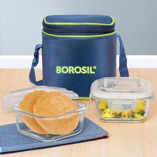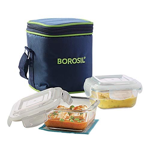 MADE OF THE HIGHEST QUALITY BOROSILICATE GLASS -Borosil’s glass lunch boxes are made of the best borosilicate glass, which is extreme temperature resistant and extremely tough – so it can withstand daily use and commutes- just what you need to carry all that lovingly prepared home food to office or college. LEAK PROOF, AIR-TIGHT, BPA FREE LIDS -The lunchboxes can be used to carry dals and sabzis without fear of leakage. A 100% airtight seal ensures that no smells get in or out – keeping your food perfectly fresh. MICROWAVE & FREEZER SAFE -Reheat your food whenever you’re ready to eat without going through the trouble of transferring them to microwave safe bowls first! Our glass lunch boxes can go straight from the fridge and into the microwave! STAIN PROOF & EASY TO CLEAN – The glass does not absorb any stains or smells so it’s easy to clean and hygienic. The removable silicone gaskets make cleaning the lid a breeze. The lunchboxes are also dishwasher safe. CONTEMPORARY CARRYBAG – The glass lunch boxes come with a smartly designed carrybag that’s also easy to clean. This makes them a great option to carry your lunch to office or college.