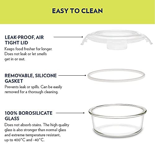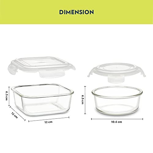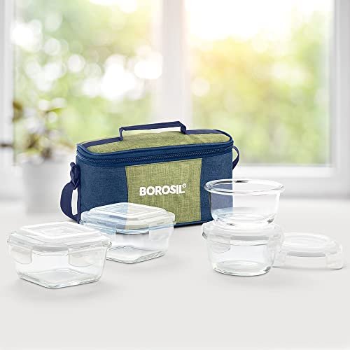 Borosil Prime Universal Lunchbox | 4pc Container Set (320ml x 2 Square + 240 ml x 2 Round) | Borosilicate Glass | Microwave & Dishwasher Safe | Tiffin for Office/School/College | Blue, Transparent