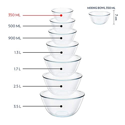 BOROSILICATE GLASS – Borosil’s entire range of mixing and serving bowls is made of the highest quality borosilicate glass, which is extreme temperature resistant (-20°C in the freezer to 350°C in the oven) and extremely tough – so it can withstand daily use in your kitchen. MULTIPURPOSE BOWLS : These glass bowls are versatile, suitable for storing leftovers in the fridge, storing snacks, reheating in the microwave, meal prepping, storing cut fruits and vegetables, marinating or storing meat and fish, freezing chutneys, purees, meats, and fruits, baking meals in the oven, carrying meals on the go, and storing baby food. MICROWAVE, OVEN & FREEZER SAFE : Our borosilicate mixing bowls can be used for reheating in the microwave or for baking in the oven. They can withstand temperatures up to 350°C, higher than the highest setting on your oven. EASY TO CLEAN : As the glass does not absorb stains, it cleans with just a swipe. It’s also dishwasher safe. Scratch resistant borosilicate glass ensures your serving bowls look new even after years of daily use. MADE IN INDIA – Crafted in India, Built for Your Lifestyle: Discover the first all-Indian borosilicate glass mixing & serving bowl, expertly designed to complement your daily routine with style and durability.