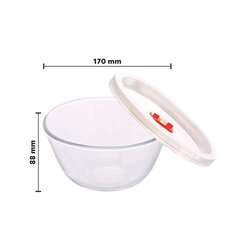 BOROSILICATE GLASS – Borosil’s entire range of mixing and serving bowls is made of the highest quality borosilicate glass, which is extreme temperature resistant (-20°C in the freezer to 350°C in the oven) and extremely tough – so it can withstand daily use in your kitchen. MULTIPURPOSE BOWLS WITH LIDS- You can use these glass mixing bowls to serve dals, subzis and curries, refrigerate leftovers, reheat meals in the microwave, bake in the oven, mix batters for cakes and pancakes, whisk eggs, set puddings in the fridge, etc. The glass mixing bowls come with lids, so you can keep your food covered and safe, while serving or storing. MICROWAVE, OVEN & FREEZER SAFE (NOT LID) : Our borosilicate mixing bowls can be used for reheating in the microwave or for baking in the oven. They can withstand temperatures up to 350°C, higher than the highest setting on your oven. EASY TO CLEAN : As the glass does not absorb stains, it cleans with just a swipe. It’s also dishwasher safe. Scratch resistant borosilicate glass ensures your serving bowls look new even after years of daily use. MADE IN INDIA – Crafted in India, Built for Your Lifestyle: Discover the first all-Indian borosilicate glass mixing & serving bowl, expertly designed to complement your daily routine with style and durability.