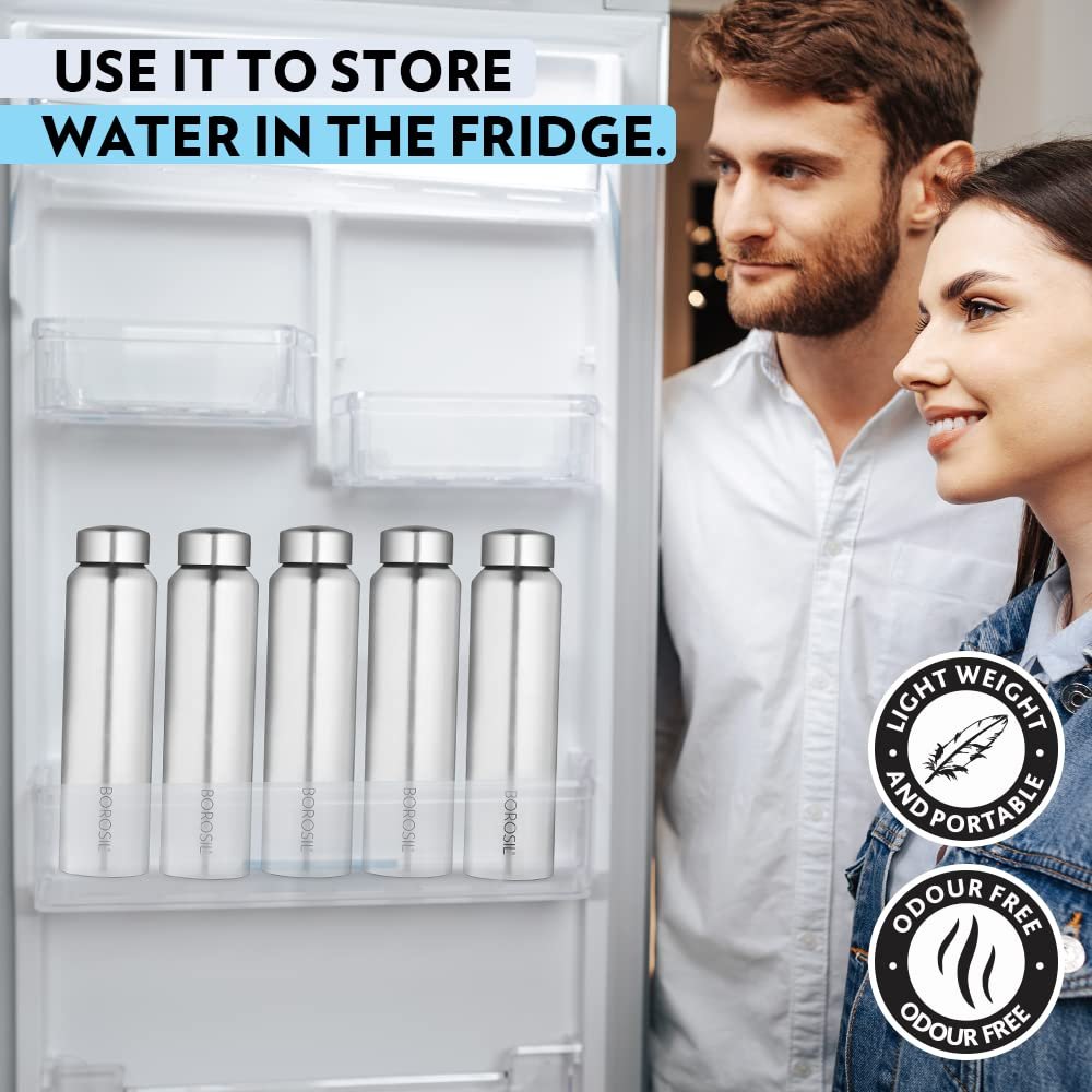 Borosil Hydra Easy Sip Stainless Steel 750 ml Water Bottle | Single Wall, Leakproof, BPA Free| Bottle for Office, School, College & Gym | Silver (Pack of 4)