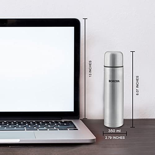 Borosil Hydra Thermo 350 ml Stainless Steel Water Bottle with Bag | Double Wall Vacuum Insulated Flask | 24 Hours Hot and Cold | Bottle for Office, Gym, School & College | 1 Year Warranty, Blue