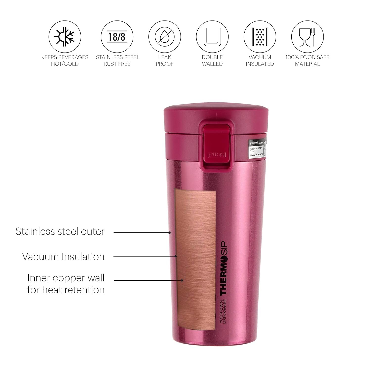 cello puro sip hot and cold inner steel flask 450 ml Flask (Pack of 1, Multicolor, Plastic, Steel)