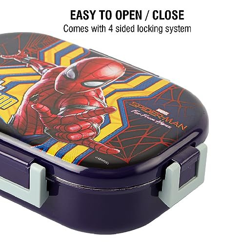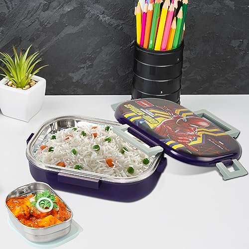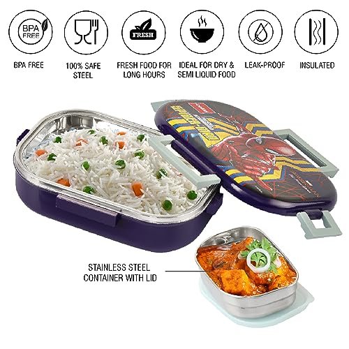 CELLO Feast Deluxe Lunch Box with Inner Steel, Spider Man Design, Purple