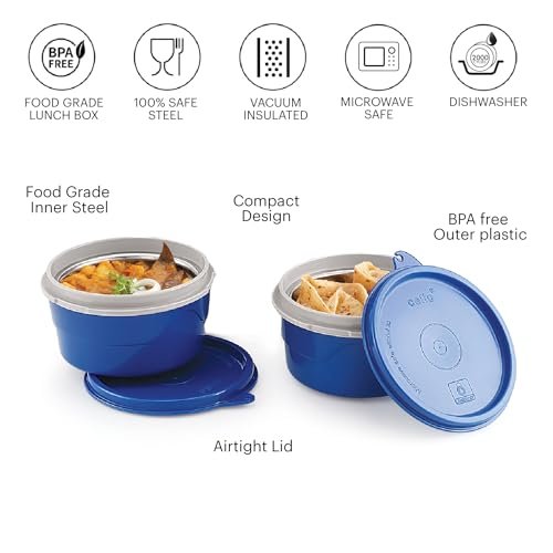 The lunch box has been designed keeping in mind the Indian palette – it is ideal for carrying rice based dishes (Chhole-Chawal, Rajma-Chawal), breads based dishes (rotis with curries, theplas) and single serve meals such as pasta, maggi, fries and much more! Made with High Quality Durable 304 Stainless Steel and 100% Non-Toxic Food Grade material makes it convenient for you to carry it for work, travel & to school. Unique jars with individual lids keep contents separate; Use individually or all together for a customized meal system, meals on the go are always organized, mess-free & 100% leak proof. Easy to clean soft fabric handy lunch carrier along with zipper ensures the functionality and make the lunch box eay to carry. Ideal for office executives and college students, 2 unique tight and spill proof containers that keep food and beverage fresh and crisp for hours.