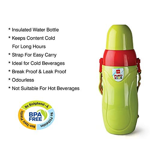 CELLO Puro Junior 600 | Hot Wheel Print Plastic Water Bottle for Kids | Easy Carry Wrist Belt | Leak Proof & Refrigerator Safe| Keeps Content Cold for Long hours | 470ml, Blue & Green