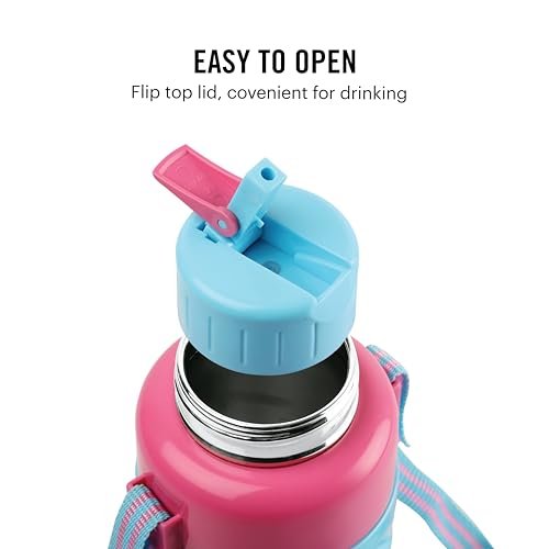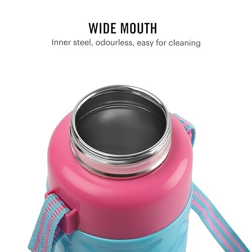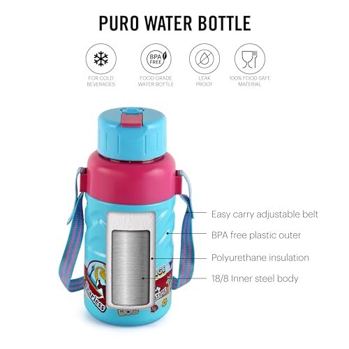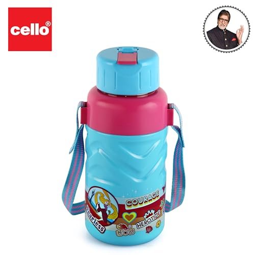 CELLO Puro Steel X Debby 600 Plastic Water Bottle for Kids | Easy Carry Wrist Belt | Leak Proof & Refrigerator Safe| Keeps Content Cold for Long Hours | 620ml, Light Blue