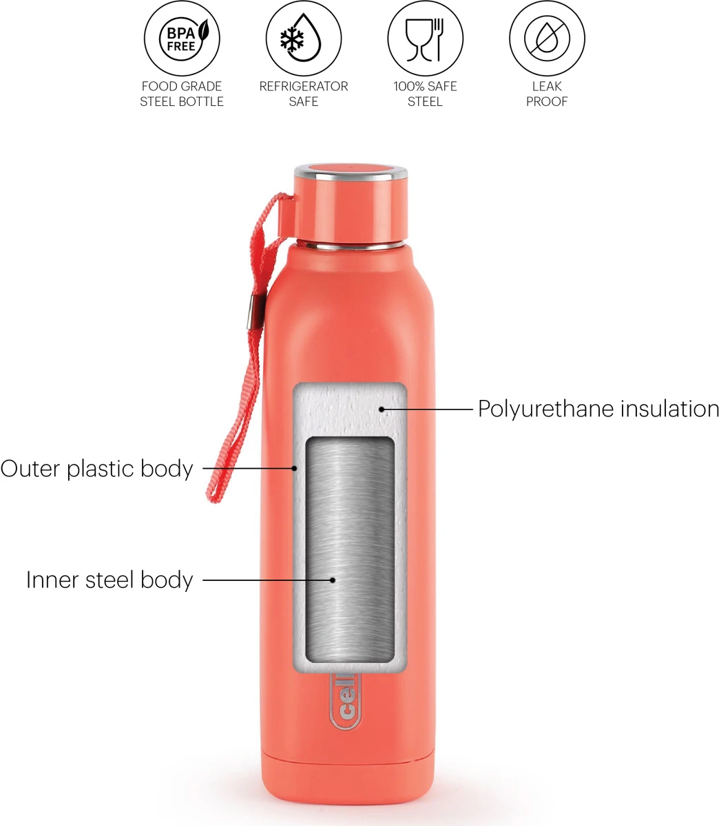 • Inner Steel Outer Plastic: With inner steel and durable outer plastic shell, this water bottle combines the best of both worlds. The stainless steel interior ensures optimal insulation and longevity, while the outer plastic layer adds an extra layer of protection against accidental bumps and scratches.