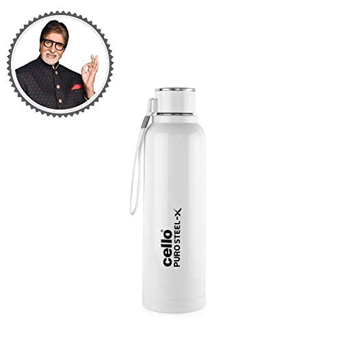 Cello Puro Steel-X Benz 600 | Leak Proof| Wide Mouth & Easy to Open | Insulated Inner Steel Outer Plastic Water Bottle | 520ml | Blue