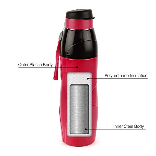 Cello Puro Steel-X Lexus 900 | Water Bottle with Inner Steel and Outer Plastic | Insulated Water Bottle | Set of 4 | 850 ml, Yellow