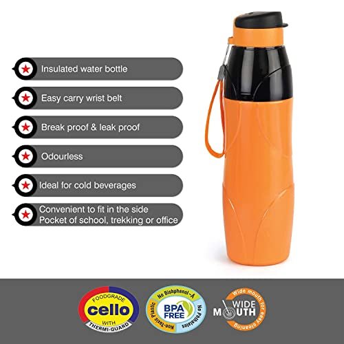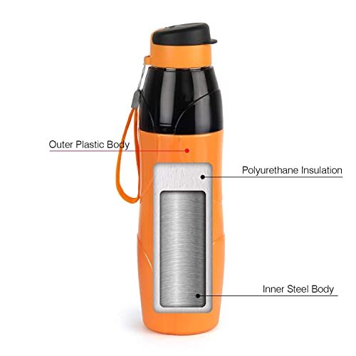Inner Steel, Outer Plastic with Polyurethane Foam insulation layer in between for storing cold beverages Please note that this bottle does not have heat retention capability for longer duration, in case you want to buy insulated bottles, please check out our range of insulated bottles & flasks Leak Proof: Bottle wide lid sealed by silicone circle BPA free, completely leak proof when it’s laid on its side or even shaken Flavor Retention: Food-grade stainless steel body with BPA free lid, which guarantees no flavor transfer which ruins the original flavor of your beverage or water, just enjoy it Suitable for all outdoor sports: hiking, camping, fishing, boating, yoga or gym fitness. Meanwhile, it’s good companion for office, party or festivals to share drink with families and friends in the best temperature