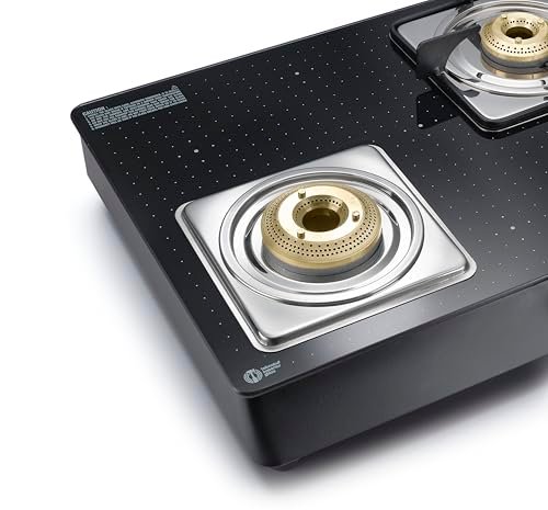 Durable Teknotuf Glass: Made with scratch-resistant toughened glass, ensuring premium durability and a sleek, modern aesthetic High-Efficiency Burners: Two brass burners deliver uniform heating, ensuring precision cooking for every recipe you try Safe and Ergonomic Design: Heat-resistant pan supports and ergonomic knobs enhance safety, stability, and ease of use during cooking Convenient Features: A 360° rotating inlet nozzle and square drip tray provide flexible installation and effective spill management Warranty and Trust: Backed by a 5-year glass warranty and 2 years on the stove body for reliable, long-term performance