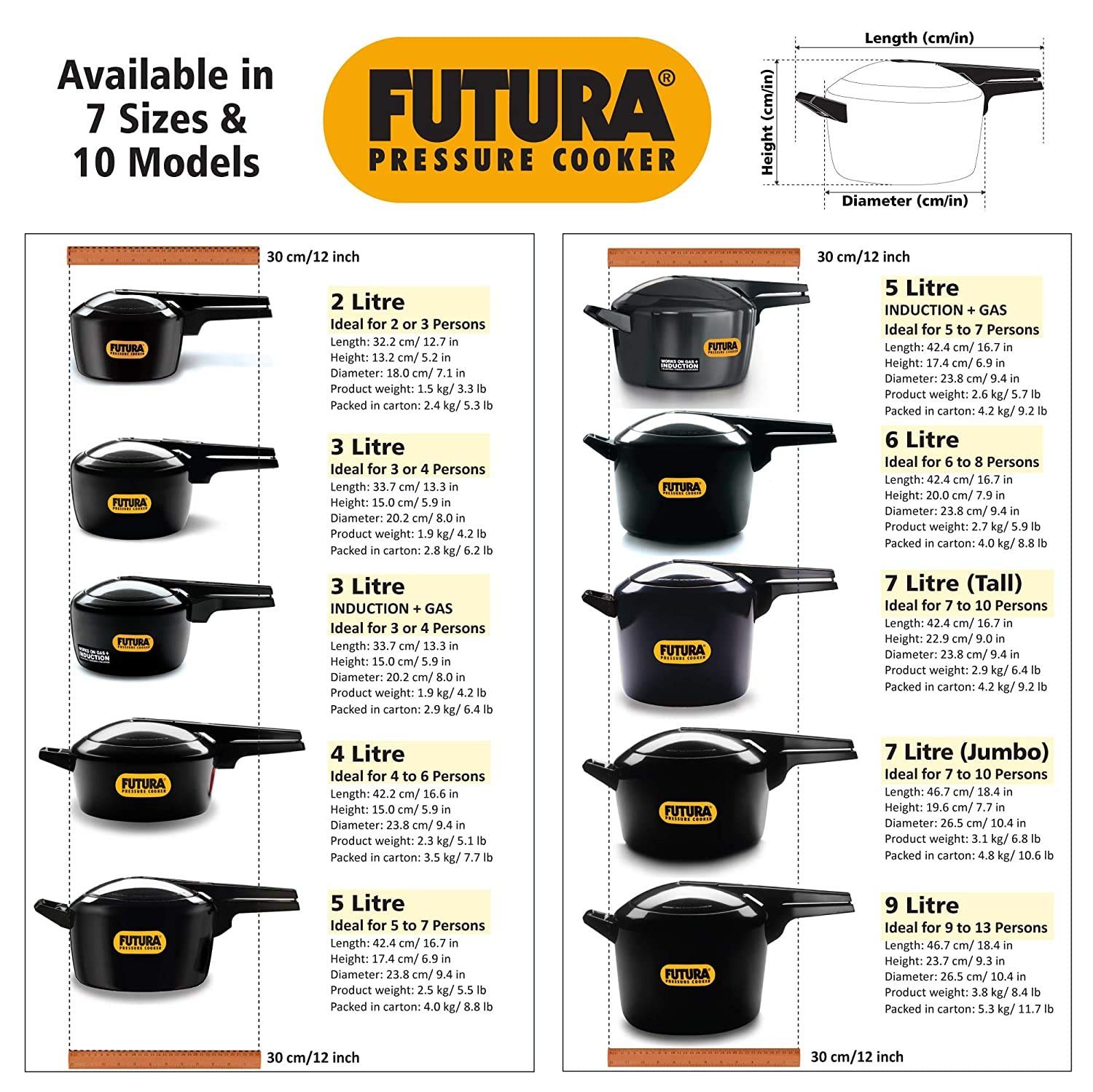 • Induction models available in 2 Litre, 3 Litre, 4 Litre, 5 Litre, 6 Litre
