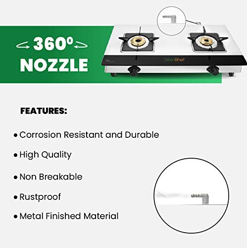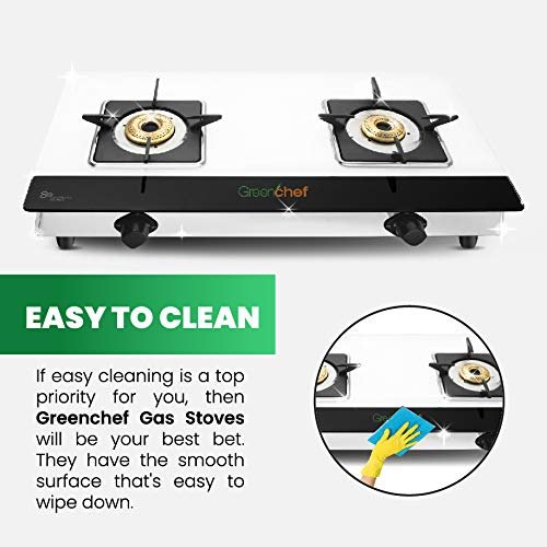 Greenchef Blaze Gas Stove comes with a stylish design crafted with a stainless-steel body and glass top which is a glass top of 6mm toughened white colour that converts your kitchen look to the modern kitchen and perfect elegant look.