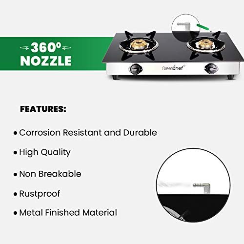 Greenchef Elite 2 Burner gas stove is an ideal buy for your kitchen as it saves both time and energy. Elite gas stove, which has a sleek design, serves both the desirable purposes of functionality and durability.
