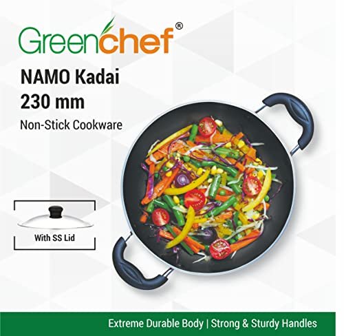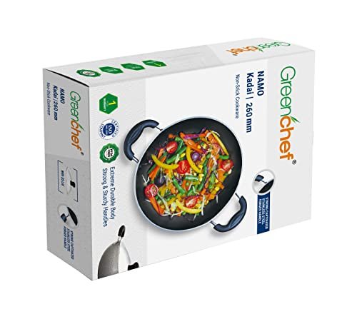 Material: Aluminium ; Nonstick cookware set includes: Kadai 260 mm With Stainless Steel Lid ; Base type: Non Induction base Non stick cookware is made of Virgin Aluminium Kadai comes with Durable food grade Greblon Non Stick coating to increases smoothness on the inner surface for minimal use of oil PFOA Free :Completely non-toxic and lightweight, you can enjoy a healthy food Cookware is compatible with all type of cooking surfaces and comes with Cool touch handles. This Can be used on Gas stove and Induction cooktop Smooth inner surface helps in easy care and cleaning Warranty: 1 year Warrant from the Manufacturer