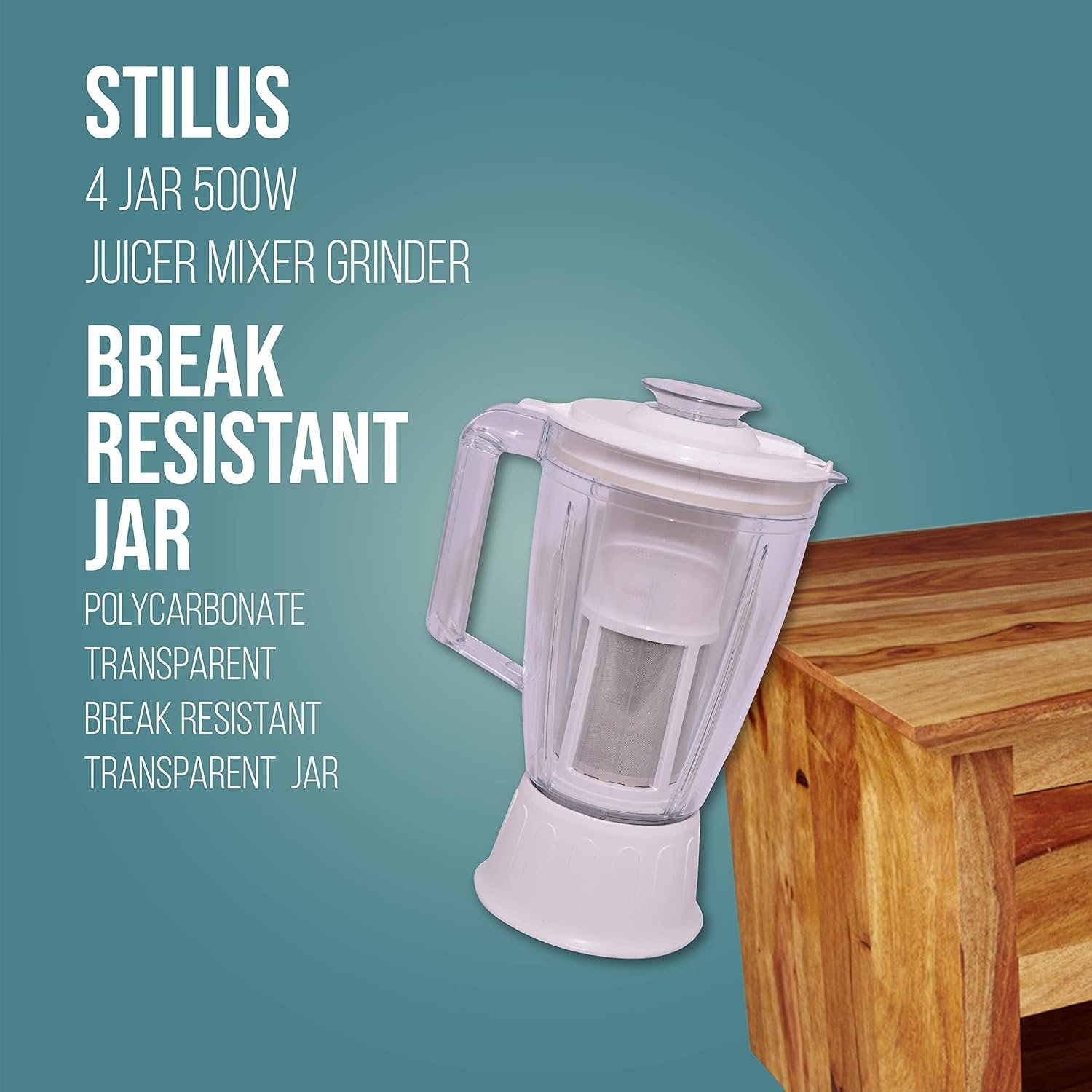 Break resistant polycarbonate transparent blending jar. Stabilising feature : Non-slip feet to prevent movement of grinder while it is running. Mincing : Yes