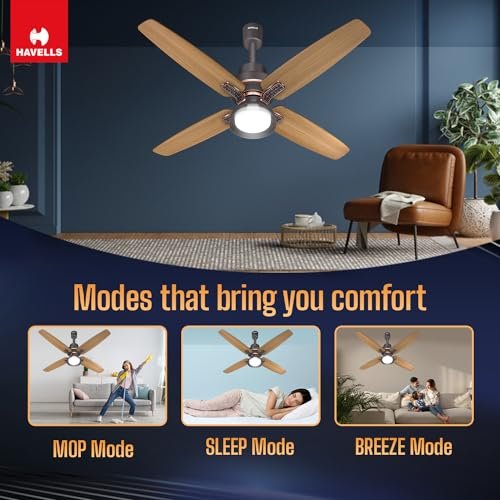 Premium MDF wood blades with dual finish to suit home decor Energy efficient BLDC Motor 5 speed RF Remote with timer function LED lights with CCT & Dimming features Breeze, Sleep modes along with Timer function 2 Year Comprehensive Warranty and 1 Year Extended Warranty To avail additional 1 year guarantee, register the fan on Havells website