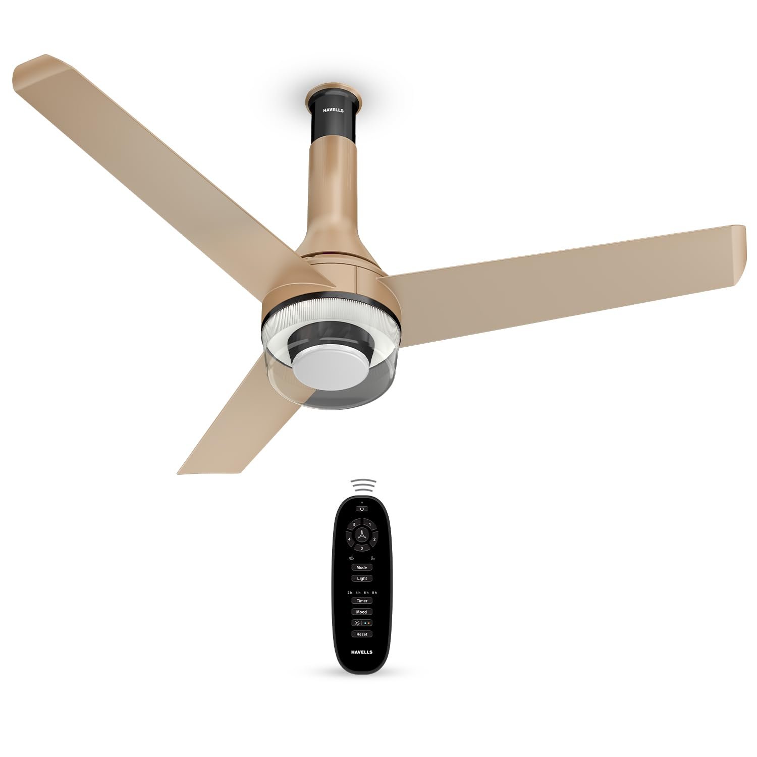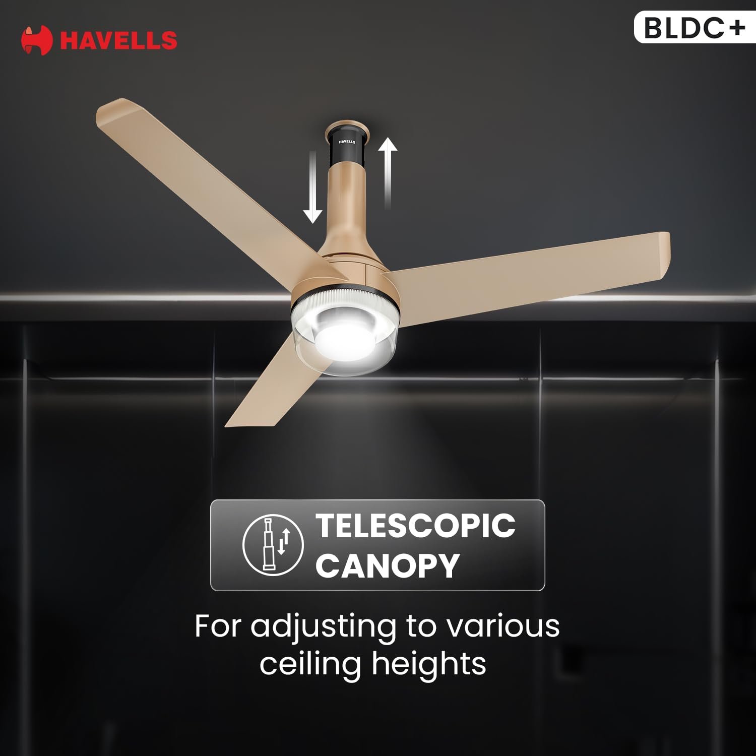 Havells 1200mm Crista Underlight BLDC Ceiling Fan | Remote Controlled, Smart Fan, IoT Enabled, Alexa & Google Home Compatible | 5 Star Rated, Upto 60% Energy Saving, 2 Year Warranty | (Champagne Cola)