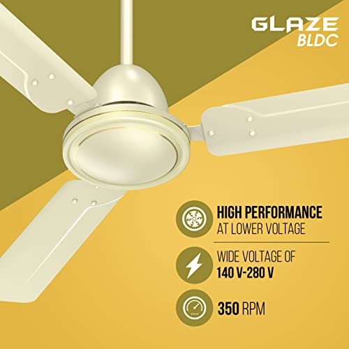 Havells 1200mm Glaze BLDC Motor Ceiling Fan | Remote Controlled, High Air Delivery Fan | 5 Star Rated, Upto 60% Energy Saving, 2 Year Warranty | (Pack of 1, Bianco)