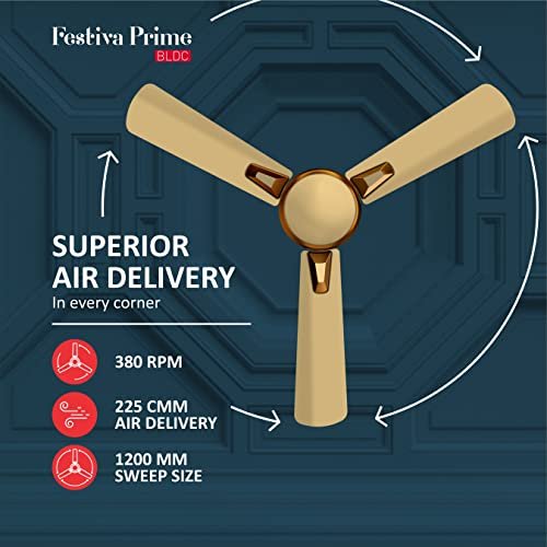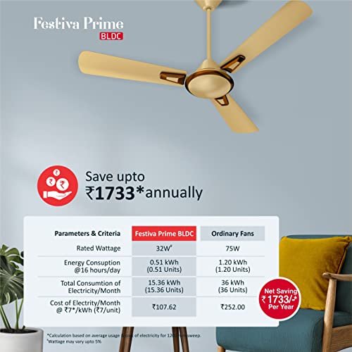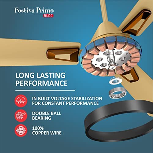 Havells 1200Mm Festiva Prime Bldc Motor Ceiling Fan|5 Stars Cf With Rf Remote, 100% Copper, Upto 57% Energy Saving|Eco Active Technology, 2 Year Warranty|(Pack Of 1, Beige Cola Chrome)