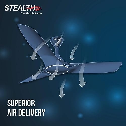 Havells 1250mm Stealth Air Ceiling Fan | Aerodynamic blades for silent operation, Superior Air Delivery | Dust Resistant , the most slient fan with Premium look and finish | (Pack of 1, Indigo Blue)