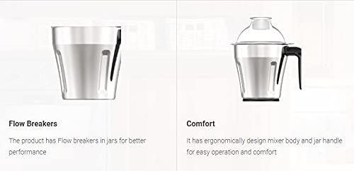 3 Superior Stainless Steel Jars: Chutney jar of 500ml, dry or wet grinder jar of 1 liter, blending jar of 1.5 liters<br>