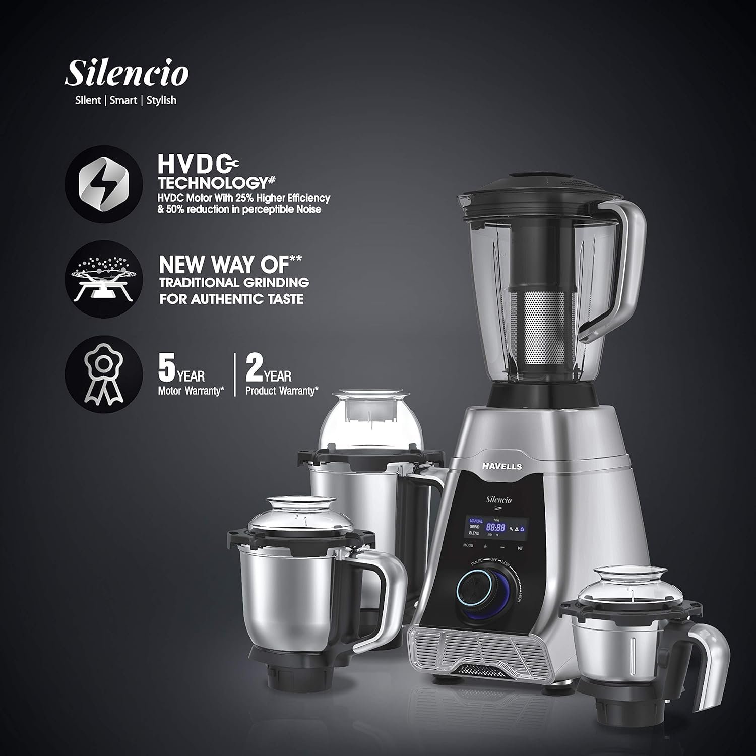 HAVELLS MIXER GRINDER SILENCIO 4 JARS