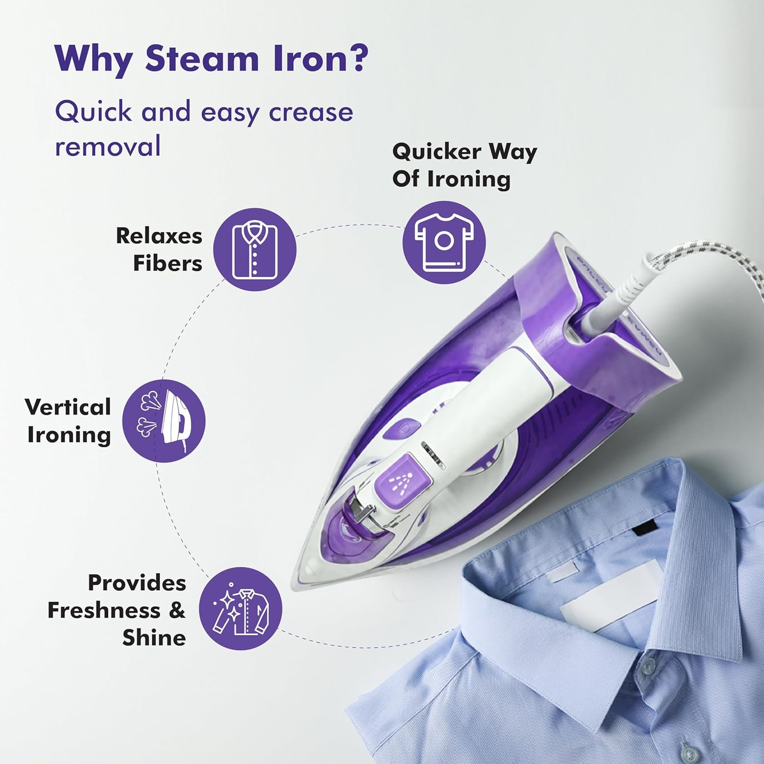 Ceramic soleplate; Dry ironing function; Soft grip handle; 2 Year Product Warranty