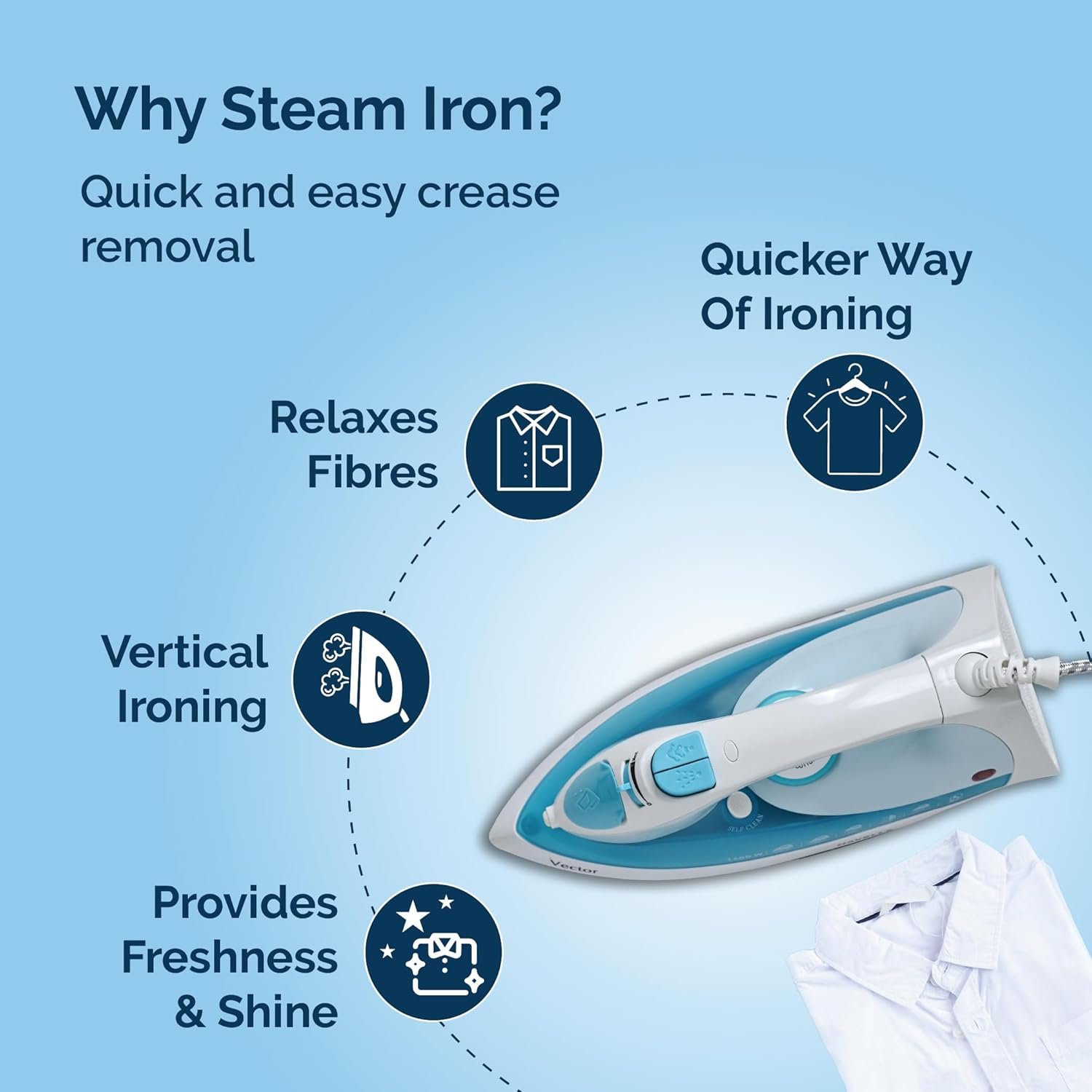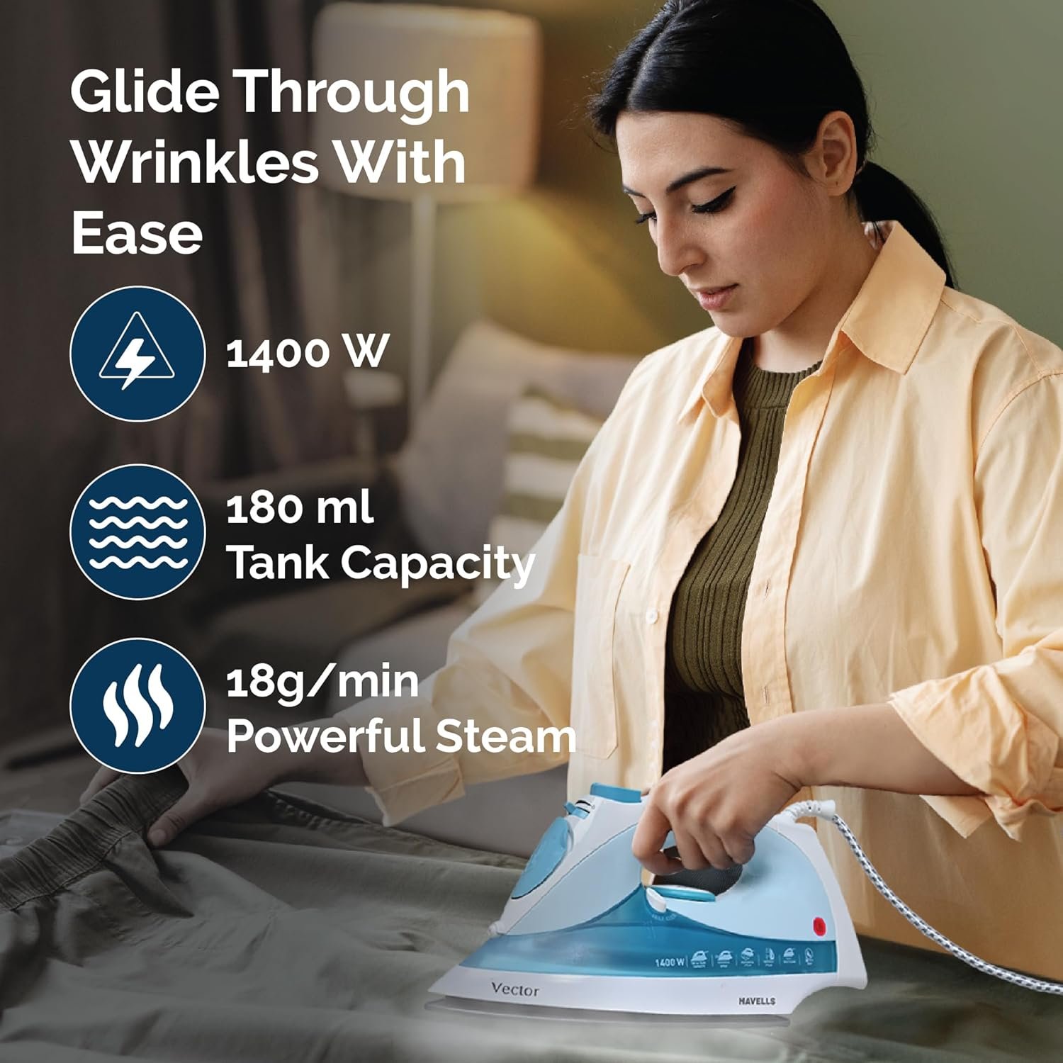 Horizontal & Vertical Steaming : Where most of the competition gives only horizontal steaming Havells Steam Irons can do both Vertical and Horizontal steaming.
