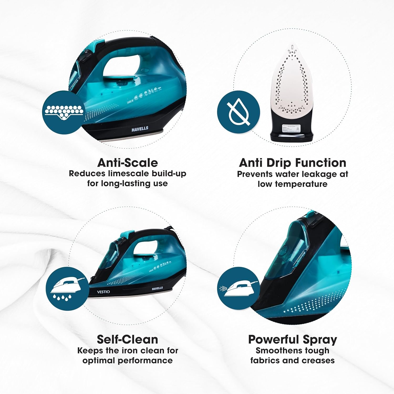 Horizontal & Vertical Steaming : Where most of the competition gives only horizontal steaming Havells Steam Irons can do both Vertical and Horizontal steaming.