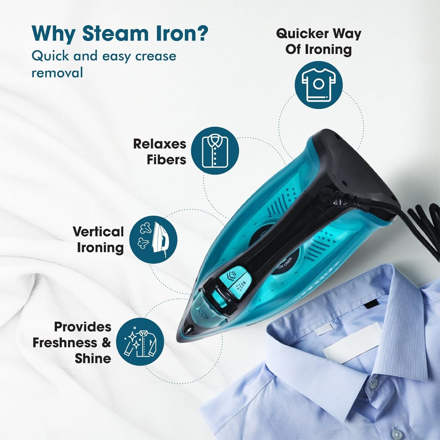 High Steaming Rate : High steaming rate of up to 15 g/min easy wrinkle removal and perfect crease on variety of fabrics – Cotton, Linen, Silk, Wool, Denim, Nylon etc.