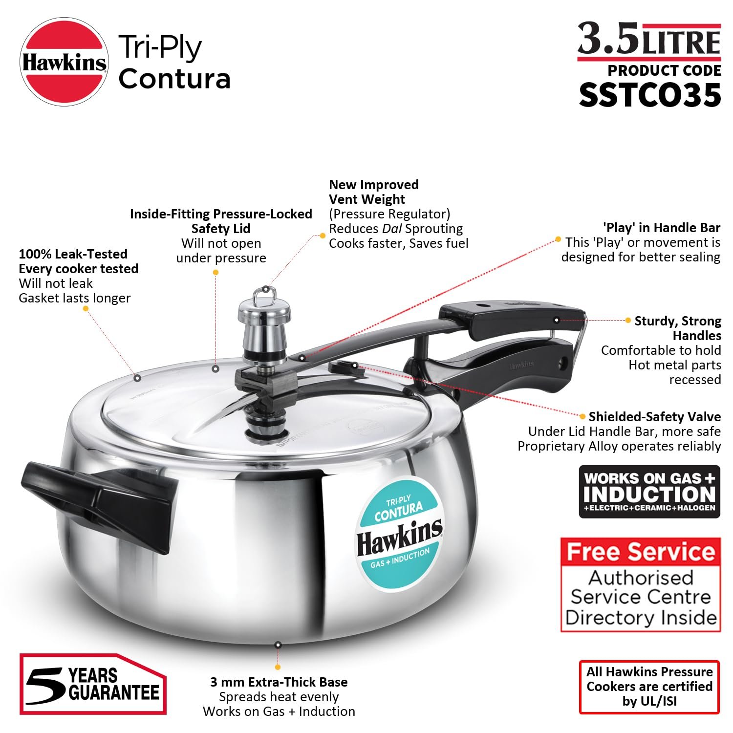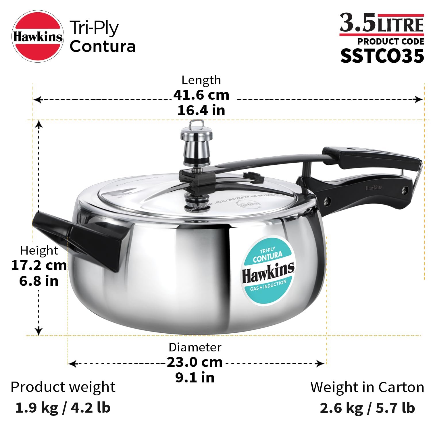 HAWKINS COOKER CONTURA TRI-PLY 3.5LTR