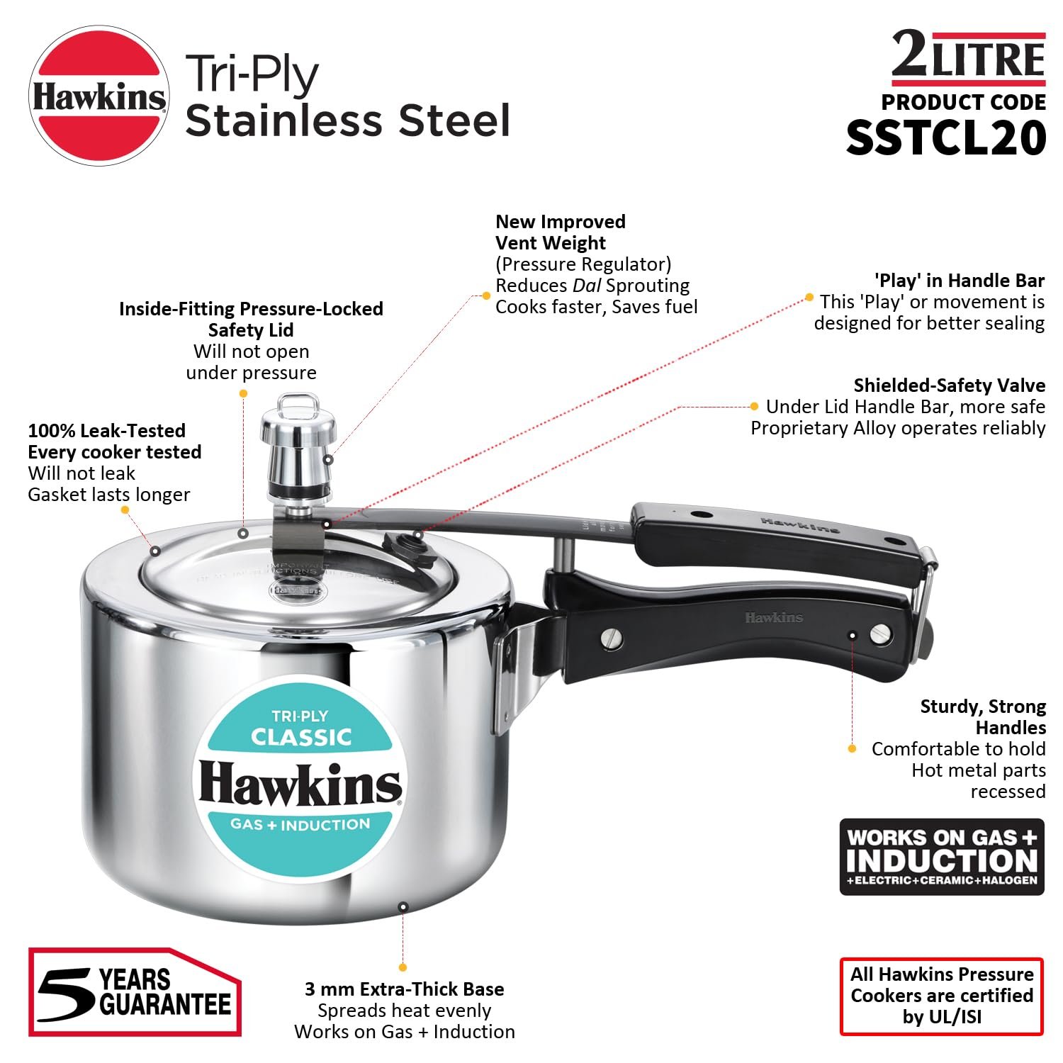 HAWKINS COOKER TRI-PLY SS 2LTR