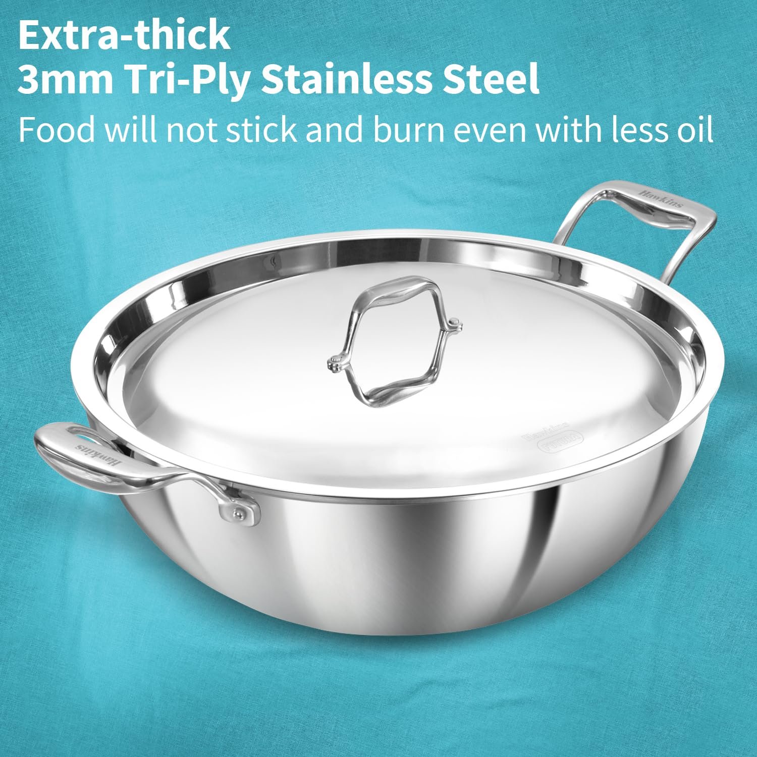 • Extra-thick 3 mm Tri-Ply Stainless Steel – Food will not stick and burn even with less oil