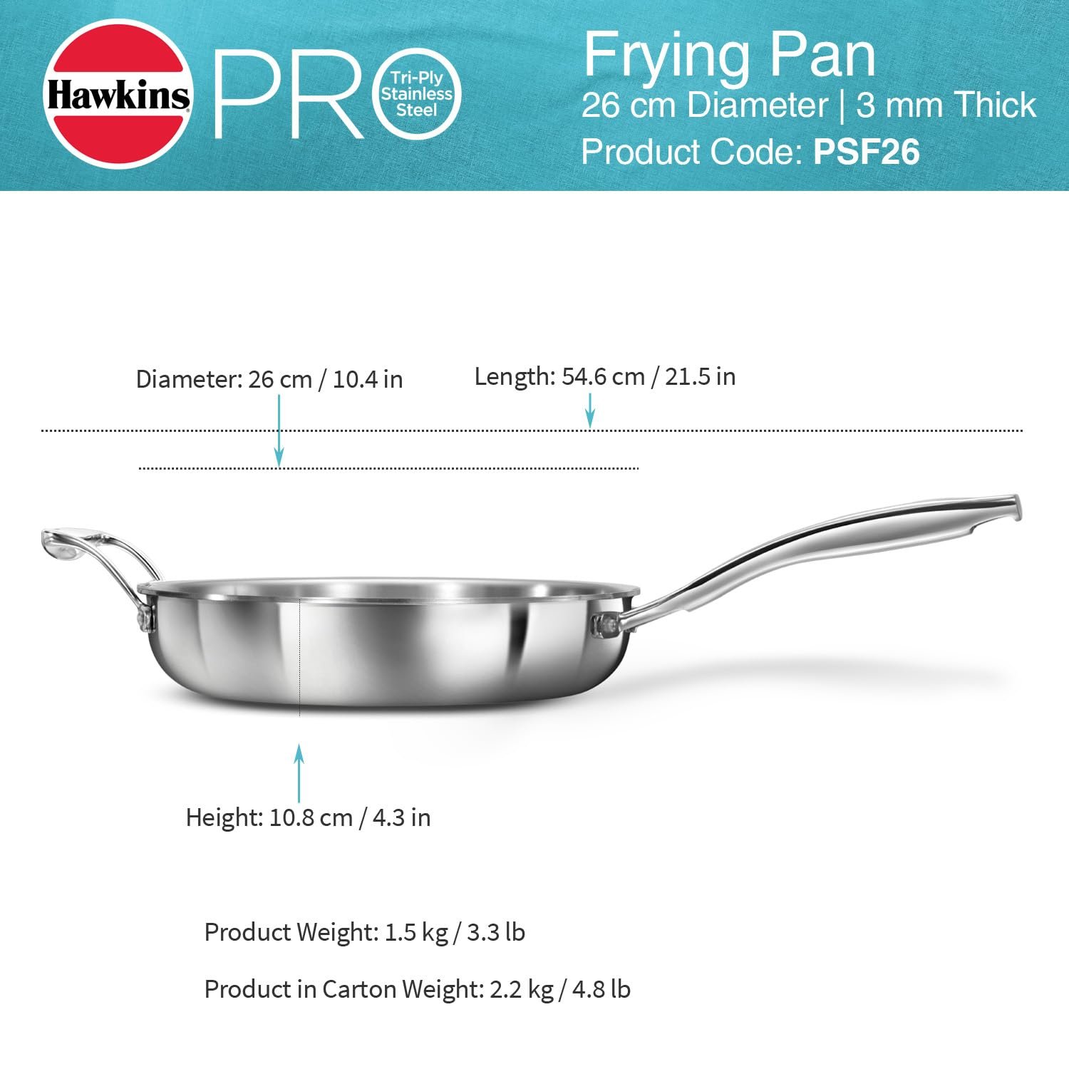 HAWKINS FRYING PAN PRO TRI-PLY SS WO/L 26CM