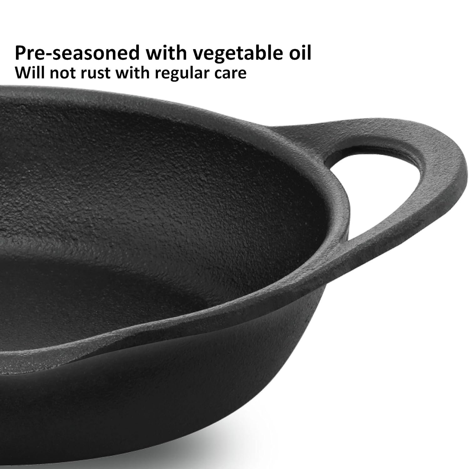 • Pre-seasoned with vegetable oil – Will not rust with regular care