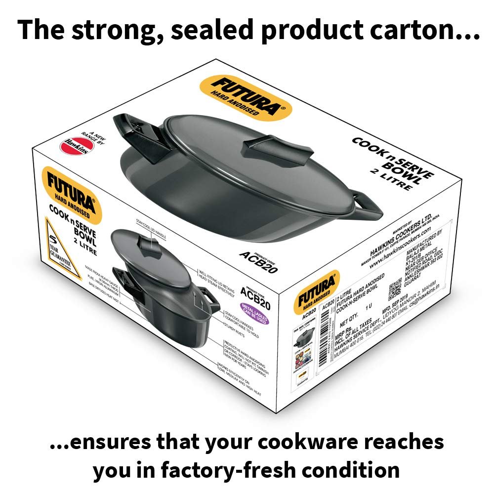 • The 4.06 mm thick base and sides spread heat evenly and retain warmth for a long time – making it an excellent utensil for both cooking and serving. It is offered with Hard Anodised Lid