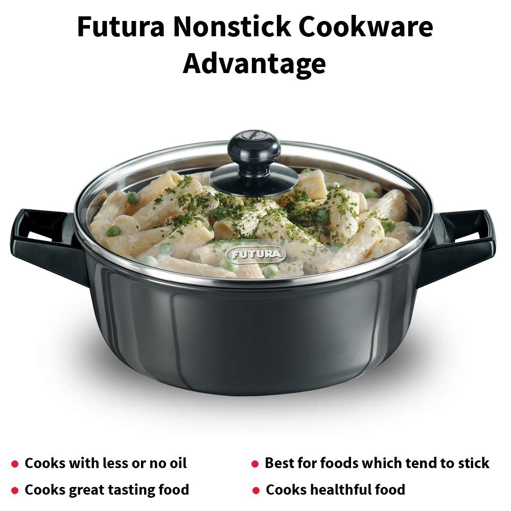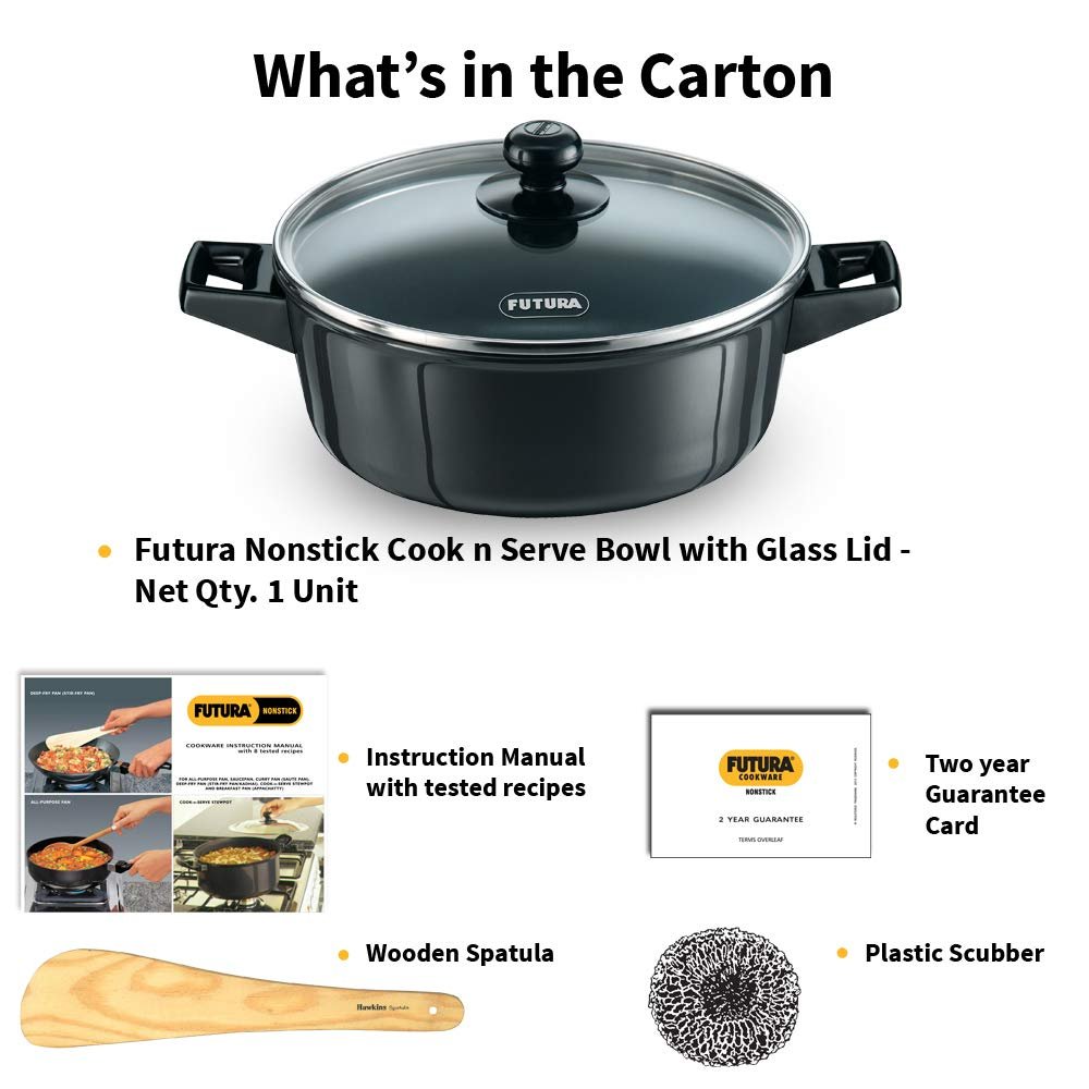• The 4.06 mm thick base and sides spread heat evenly and retain warmth for a long time – making it an excellent utensil for both cooking and serving. It is offered with elegant Glass Lid