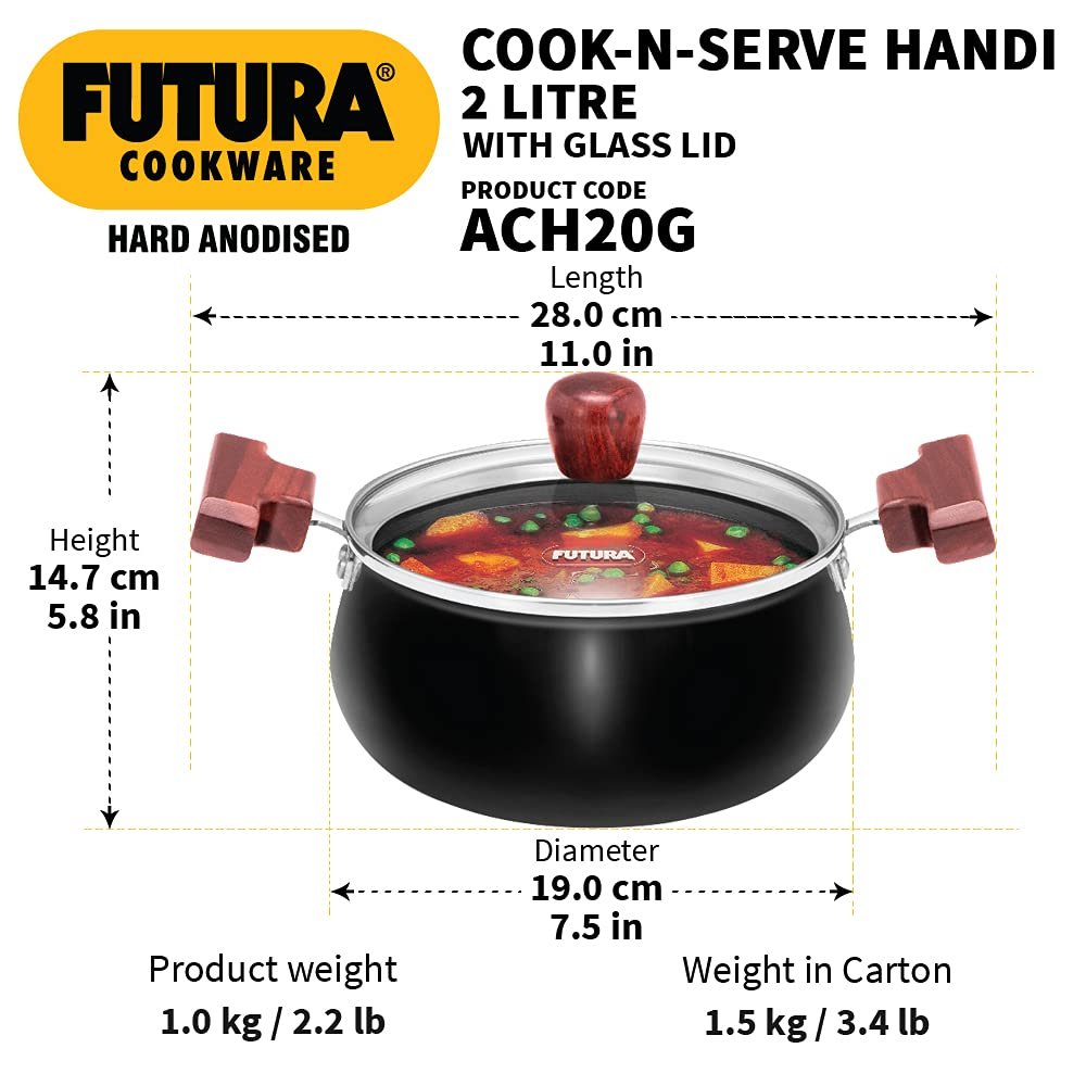 HAWKINS FUTURA COOK N SERVE HANDIS W/GLASS LID 16CM
