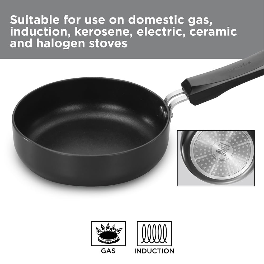 • PFOA Free Non-stick coating locked into tough Hard Anodised Aluminium – lasts longer
